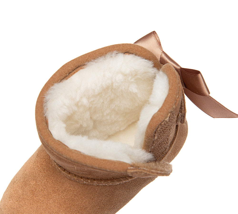 - Plush sheepskin wool lining keeps little feet warm and breathable.