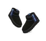 Introducing the highly sought-after Australian Shepherd Tazzy Mini Vance Platforms. This fan favourite makes a comeback with a special twist to the classic tassy design. The new platforms feature an embroidered border which provides a fun element to any casual wear. Embracing its timeless charm, the sheepskin wool interior ensures warmth, while the water-resistant coating protects against dirt and water.