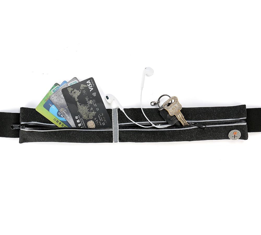 Our Zip Running Belt is a comfortable running belt alternative for those runners that don't particularly like the armband or pouches. The sleek design allows you to easily, comfortably, and securely carry everything you need while running, hiking, biking, working out at the gym, travelling, and more.